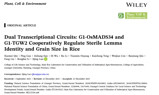 近日,我院罗继景教授团队在水稻护颖发育特化的调控分子机制上取得新进展,相关成果以“Dual Transcriptional...