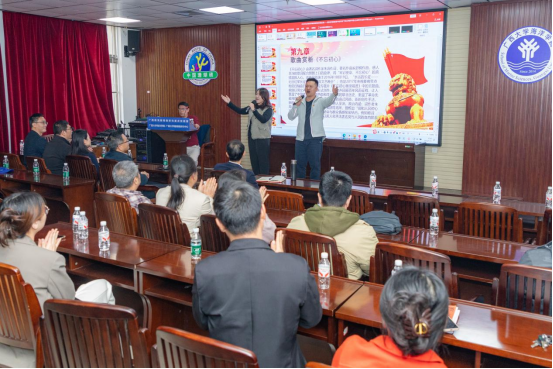 活动现场氛围热烈浓厚,互动环节更是将气氛推向高潮。青年师生党员现场演唱《不忘初心》《江山》《领航》《我宣誓》《英雄赞歌》等歌曲,真挚情感引发全场共鸣。全体与会党员起立高唱《没有共产党就没有新中国》,凝聚起砥砺奋进的精神力量,展现高校教师党员昂扬风貌。音乐党课在深情的氛围与热烈的掌声中落下帷幕。